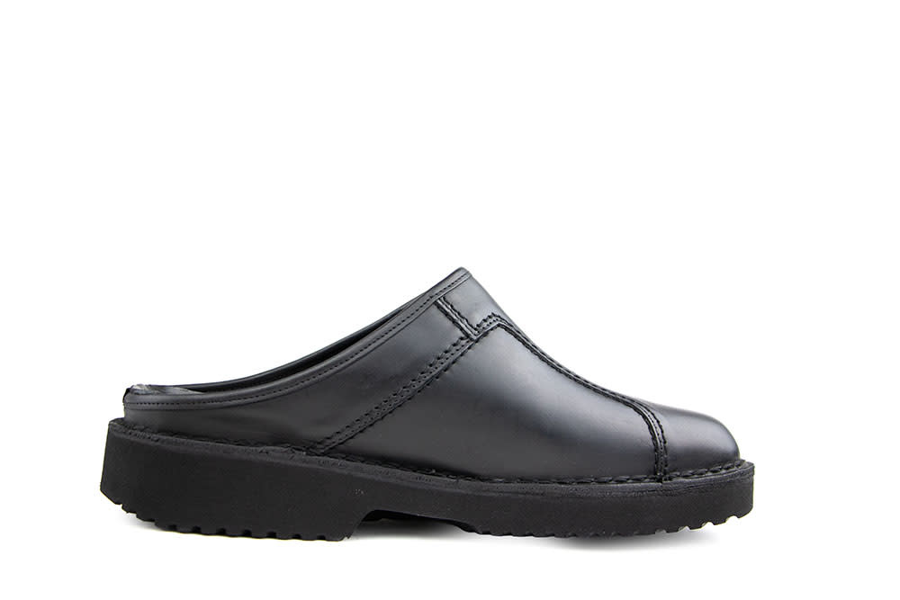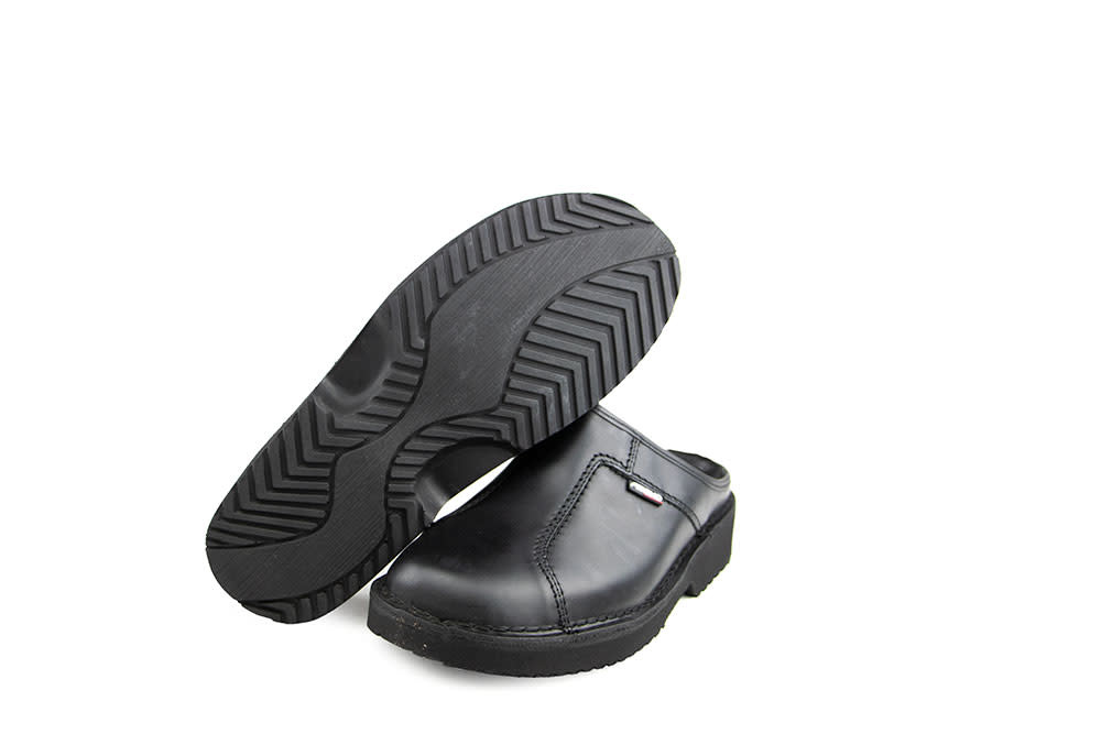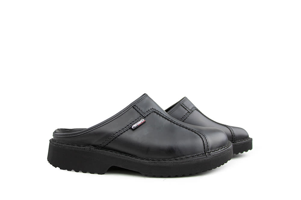 Diese robusten schwarzen Amako Herren-Pantoletten aus Leder vereinen hohen Komfort mit einer markanten, maskulinen Ausstrahlung. Das strapazierfähige Leder ist mit auffälligen Ziernähten versehen und verleiht dem Schuh einen charaktervollen Look. Das Innenfutter aus Leder sorgt für ein angenehmes Tragegefühl, während die robuste Gummisohle Stabilität und guten Halt bietet. Ein dezenter Logo-Akzent rundet das Design stilvoll ab. Ideal für Männer, die bequeme Pantoletten mit einer kraftvollen Note suchen.