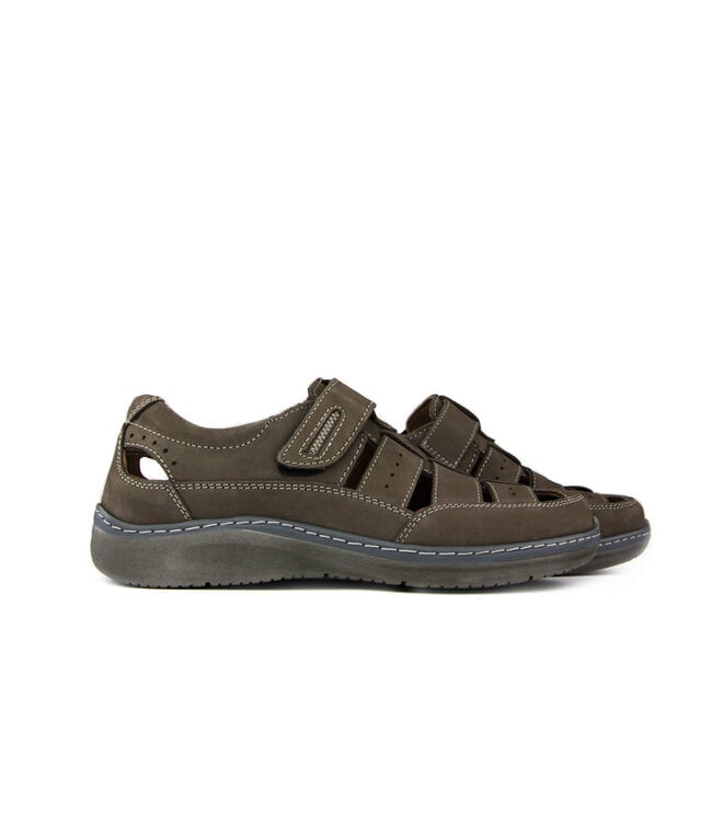 Graue Ara Sandalen aus Nubukleder für den lässigen Herrn. Die Sandalen verfügen über stilvolle Perforationen, Einkerbungen zwischen den Riemen und auffällige weiße Ziernähte, die für einen frischen Sommerlook sorgen. Der geformte Riemen über dem Spann und die graue, durchgesteppte Sohle geben dem Design zusätzlichen Charakter.