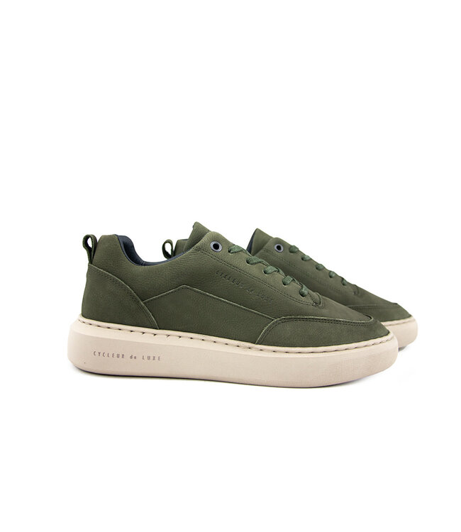 Diese grünen Ledersneaker von Cycleur de Luxe sind die perfekte Mischung aus sportlich und stilvoll. Die feinen Steppnähte und die klare Silhouette verleihen dem Schuh ein gepflegtes, modernes Aussehen. Der Metallring an der Seite und die Lasche an der Ferse sorgen für einen dezent robusten Akzent, während die beige Gummisohle das Gesamtbild harmonisch abrundet.