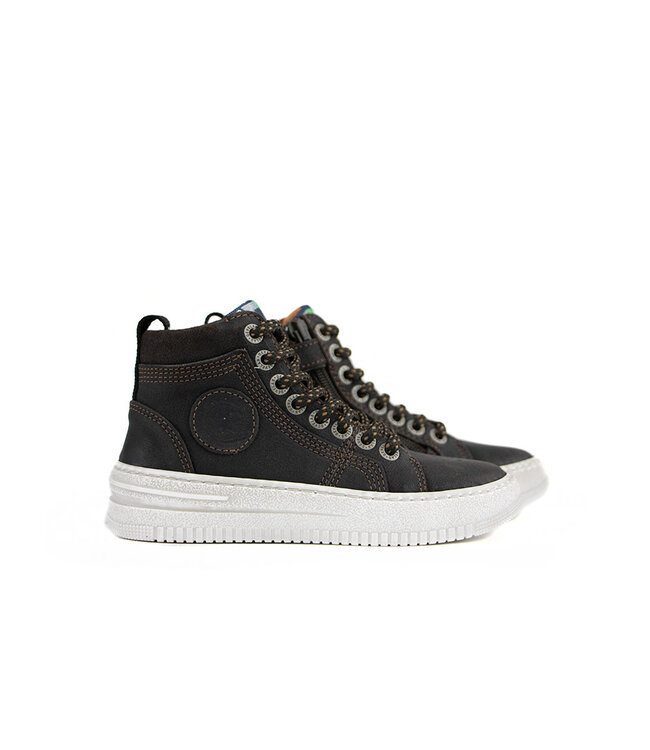 Robuste, hohe Develab Schnürschuhe mit sportlicher Dirt-Look Sneaker-Sohle. Aus strapazierfähigem dunkelbraunem Leder mit helleren Steppnähten, was ihnen eine lässige Optik verleiht.