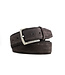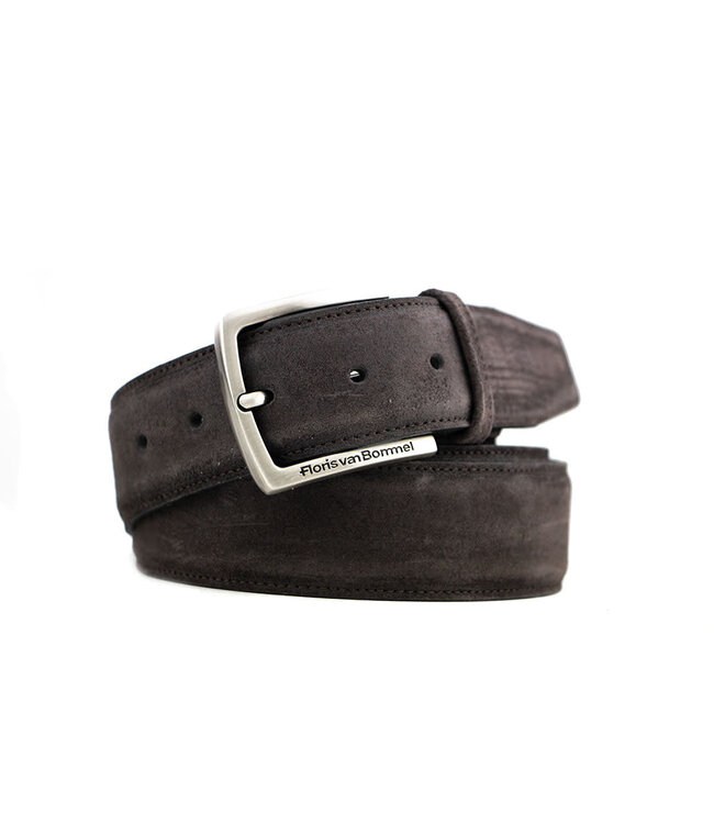 Robuste, dunkelbraune Floris van Bommel „Belter“ aus Veloursleder für sportliche Herren. Sie verfügen über eine grob gearbeitete Veloursleder-Optik, eine matte silberfarbene Schnalle mit Logo-Gravur und ein graues Innenfutter. Der Gürtel ist nur in 115 cm erhältlich, kann aber vollständig nach Maß gefertigt werden. Dieser „Belter“ ist 4 cm breit. Das Gesamtbild ist gleichzeitig ruhig und markant. Ein schönes Detail ist die Linienführung über die Hälfte des Gürtels.