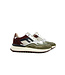 Die Floris van Bommel Noppi 29.53 Sneaker aus grünem Veloursleder sind ein echtes Statement für stilbewusste Männer. Verschiedene Materialien und Farben machen dieses Modell besonders: beige Lederdetails, ein weißes Leder-Schnürblatt, ein cognacfarbenes Lederfersenstück und ein bordeauxroter Velourslederabschluss. Das schwarze F aus Leder an der Seite sowie der schwarze Gummieinsatz an der Ferse verleihen dem Schuh eine sportliche Note. Abgerundet wird das Design durch den beigen Sohlenrand, die zweifarbige Noppensohle und die beigen Schnürsenkel mit schwarzem Akzent.