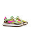 Diese Floris van Bommel Noppi 46.08 Damen-Sneaker sind ein echtes Statement für alle, die Farbe und auffällige Details lieben. Die taupefarbene Basis ist mit einem Metallic-Punkte-Print versehen, der dem Schuh einen funkelnden, modischen Effekt verleiht. Die metallic-bronzenen Lederpartien sorgen für eine luxuriöse Optik, während die pastellgrünen Lederelemente einen frischen, soften Akzent setzen. Die knallpinken Wildlederflächen bringen einen verspielten, auffälligen Farbtupfer, der den Sneaker richtig lebendig macht. Die grüne Zunge und die weißen Schnürsenkel mit goldenen Details runden das Design ab und sorgen für einen modernen, trendigen Look.