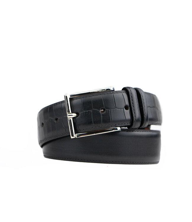 Hochwertiger, luxuriöser Herren-Gürtel von Greve. Gefertigt aus blauem Leder mit einer teilweisen Croco-Prägung. Der Gürtel ist in verschiedenen Längen erhältlich, kann jedoch auch vollständig maßgefertigt werden. Durch die Standardbreite lässt sich der Greve-Gürtel in nahezu jeder Hose tragen. Das Blau macht ihn besonders vielseitig, sodass er sich mit einer Vielzahl an Schuhen und Outfits kombinieren lässt.