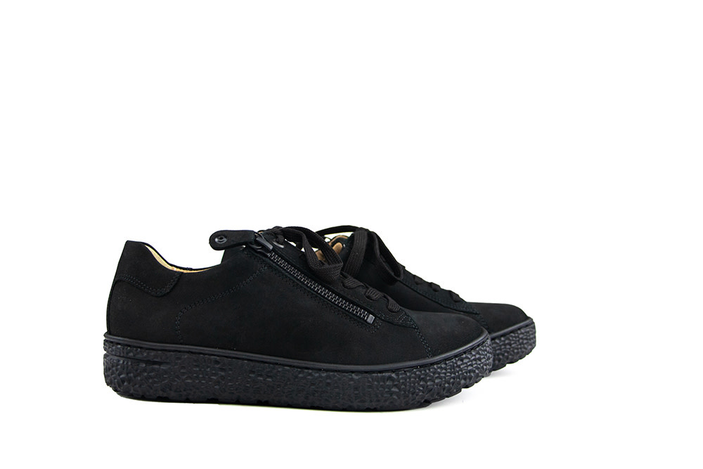 Dank der Kombination aus Schnürung und Reißverschluss lassen sich die Sneaker mühelos an- und ausziehen. Das Lederfutter ist weich und atmungsaktiv, während die Gummisohle für eine angenehme Dämpfung und guten Halt sorgt. Das herausnehmbare Fußbett macht sie ideal für eigene Einlagen. Mit Weite H bieten diese Sneaker etwas mehr Platz – perfekt für Damen mit einem etwas breiteren Fuß.