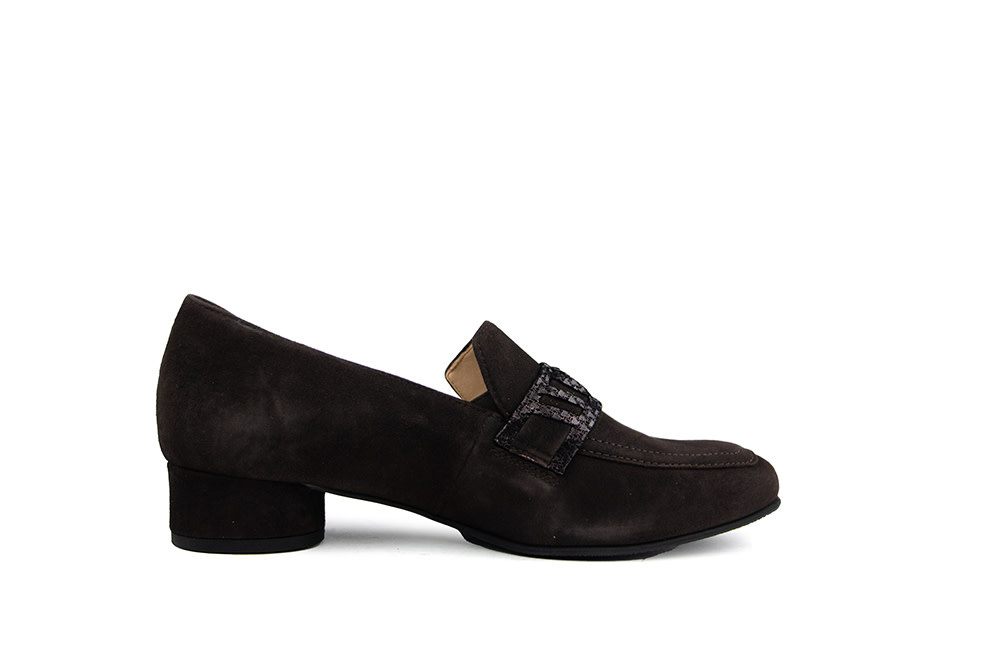 Diese eleganten Pumps von Hassia verbinden Stil und Komfort auf perfekte Weise. Das weiche braune Veloursleder mit dezenter Spiegelnaht und glänzendem Riemen über dem Spann verleiht dem Schuh einen edlen Look. Der runde Blockabsatz von 3 cm sorgt für Stabilität und angenehmen Tragekomfort den ganzen Tag.