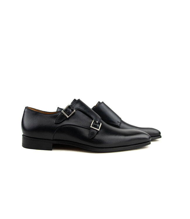 Schlicht, aber keineswegs gewöhnlich – diese schwarzen Magnanni Monk-Schuhe aus Leder stehen ganz im Zeichen des stilvollen Minimalismus. Die klare Linienführung wird durch dezente Seitennähte und feine Ziersteppungen elegant ergänzt. Die schmalen Schnallenriemen sind mit einem Lederdetail versehen und setzen dezente Akzente. Eine teilweise lederbezogene Laufsohle sorgt für eine klassische Optik und ein angenehmes Laufgefühl. Innen überzeugt der Schuh mit einem vollständig ledergefütterten Innenleben und einem hochwertigen Lederfußbett – ideal für anspruchsvolle Männer, die auf Komfort und Stil setzen. Perfekt fürs Büro, für formelle Anlässe oder als eleganter Allrounder.