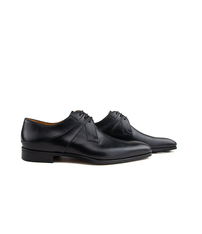 Diese schwarzen Lederschnürschuhe von Magnanni vereinen zeitlose Eleganz mit einer modernen Ausstrahlung. Die perfekte Silhouette wird durch die einzigartige Linienführung an der Seite stilvoll ergänzt. Das schön geformte Schnürteil ist mit feinen Ziernähten versehen – ein klares Zeichen handwerklicher Qualität.