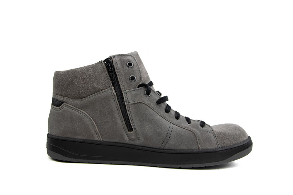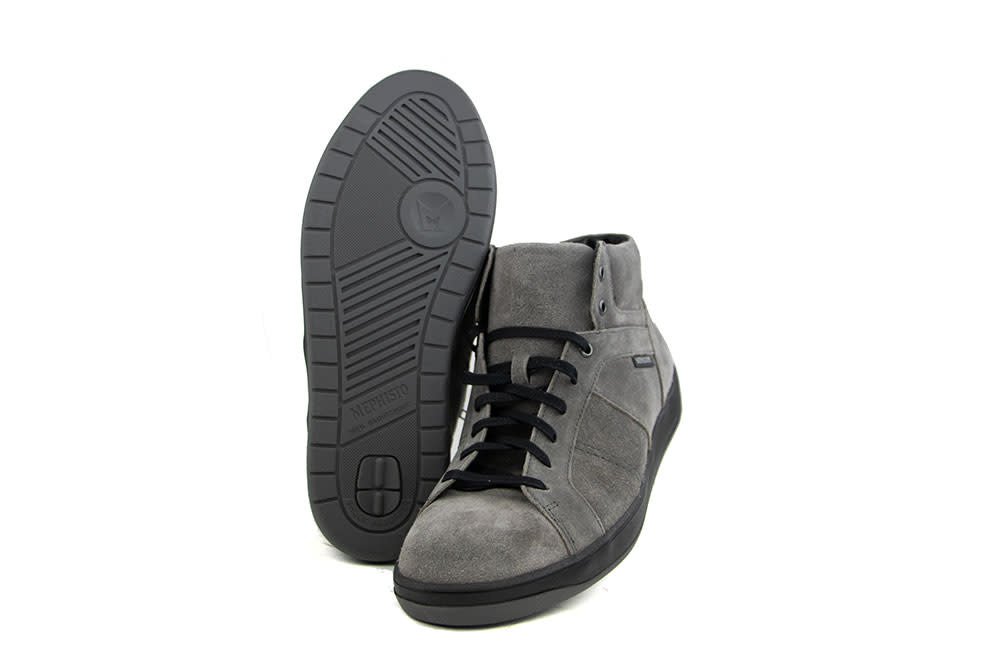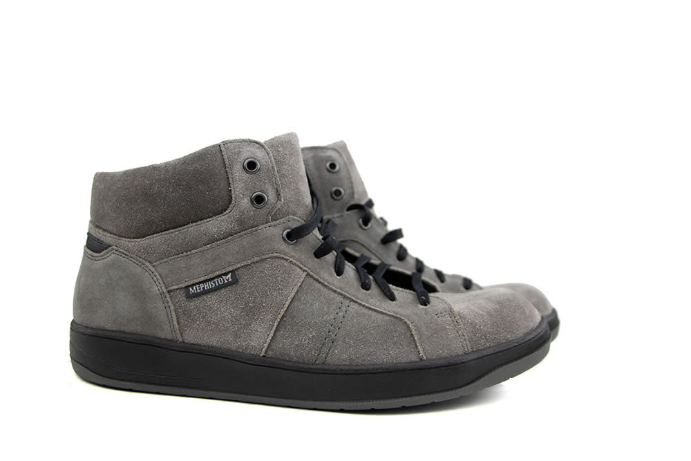 Diese hohen Mephisto Herrensneaker verbinden sportliches Design mit maximalem Komfort. Das Obermaterial aus weichem grauem Veloursleder und die gepolsterte Zunge sorgen für ein luxuriöses und angenehmes Tragegefühl. Mit schwarzen Schnürsenkeln und einer schwarzen Gummisohle wirkt der Schuh zeitlos und stilvoll. Der Reißverschluss an der Innenseite erleichtert das An- und Ausziehen, während das Lederfutter und das herausnehmbare Fußbett für langanhaltenden Komfort sorgen. Ideal für Männer, die sowohl Stil als auch praktische Funktionalität schätzen.