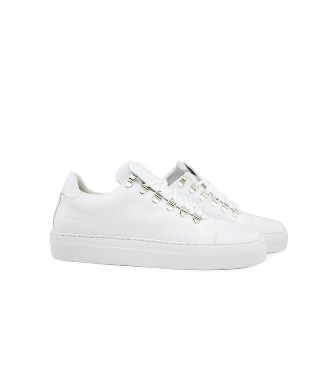 Das zeitlose Nubikk Jagger Classic Modell ist zurück — und wieder erhältlich in der beliebten weißen Ledervariante, die zuvor schon ein Favorit war. Diese Ausführung feiert ihr Comeback mit demselben frischen, hochwertigen Look. Der Sneaker verfügt über eine doppelte Zunge, eine gestickte Vorderkappe und markante silberfarbene Ösen. Silberne Logo-Details an den Schnürsenkeln und dezente Branding-Elemente runden den typischen Nubikk-Stil ab.