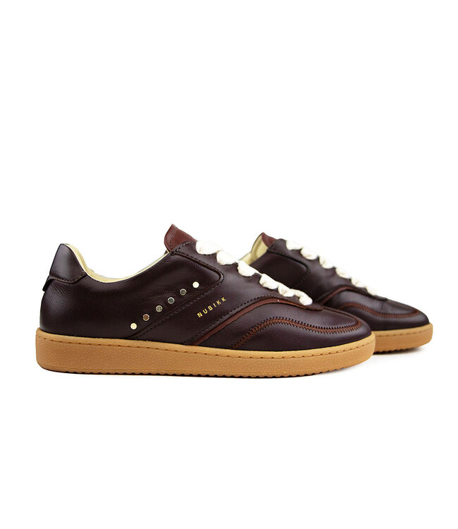 Eine moderne Neuinterpretation aus der beliebten Ray Owen-Serie von Nubikk. Diese weißen Sneaker begeistern mit breiten Schnürsenkeln und feinen Cognac-Details im Nahtbild. Die Nieten an den Seiten verleihen dem Design einen modischen, leicht rockigen Look. Mit Lederfutter, robuster Gummisohle und herausnehmbarem Fußbett bieten sie besten Tragekomfort – perfekt für den Alltag mit Stil.