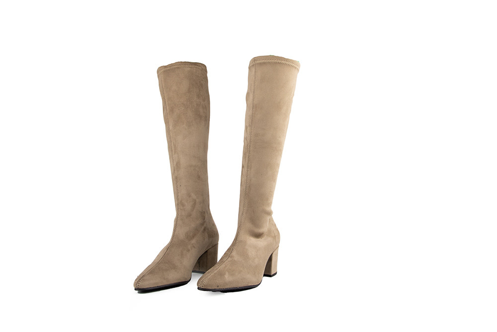 Diese beige/taupefarbenen Damenstiefel aus Suedine von Si Di Sergio vereinen Stil und Eleganz. Die spitze Schuhform und die auffällige Ziernaht an der Vorderseite verleihen dem Design eine feminine Note. Dank des Anziehmodells ohne Reißverschluss lässt sich der Stiefel leicht anziehen, während das Stretchmaterial für eine perfekte, figurbetonte Passform sorgt.