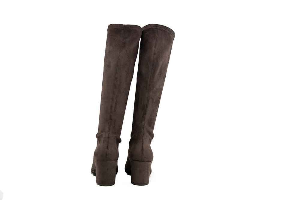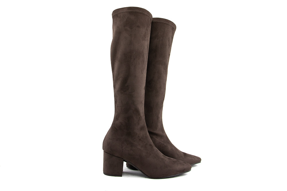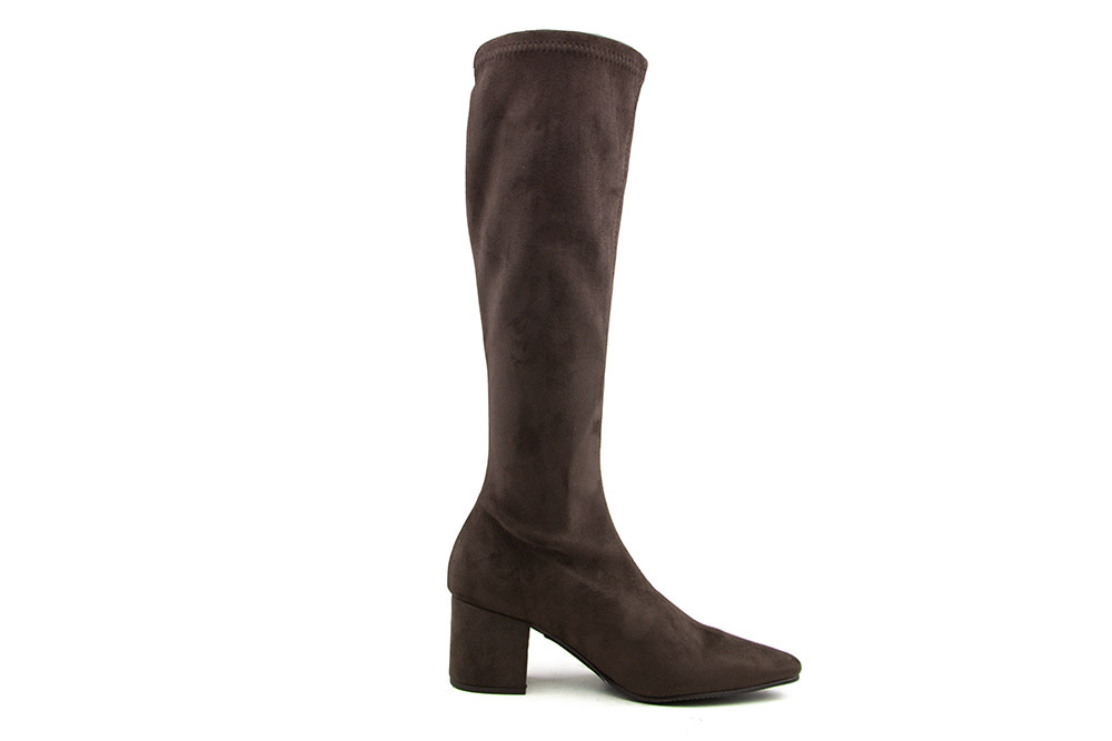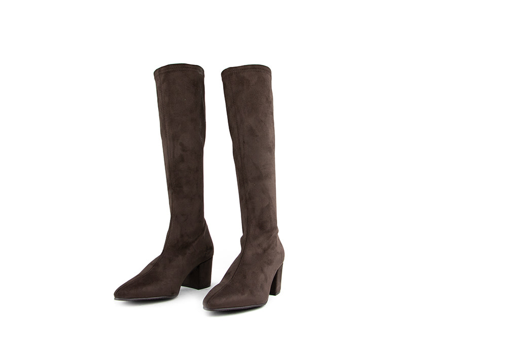Diese braunen Suedine Damenstiefel von Si Di Sergio Bota Vince verbinden Eleganz mit Komfort. Die Nahtdetails auf der Vorderseite, die spitze Form und der Blockabsatz von 5,5 cm sorgen für einen modernen und stilvollen Look.