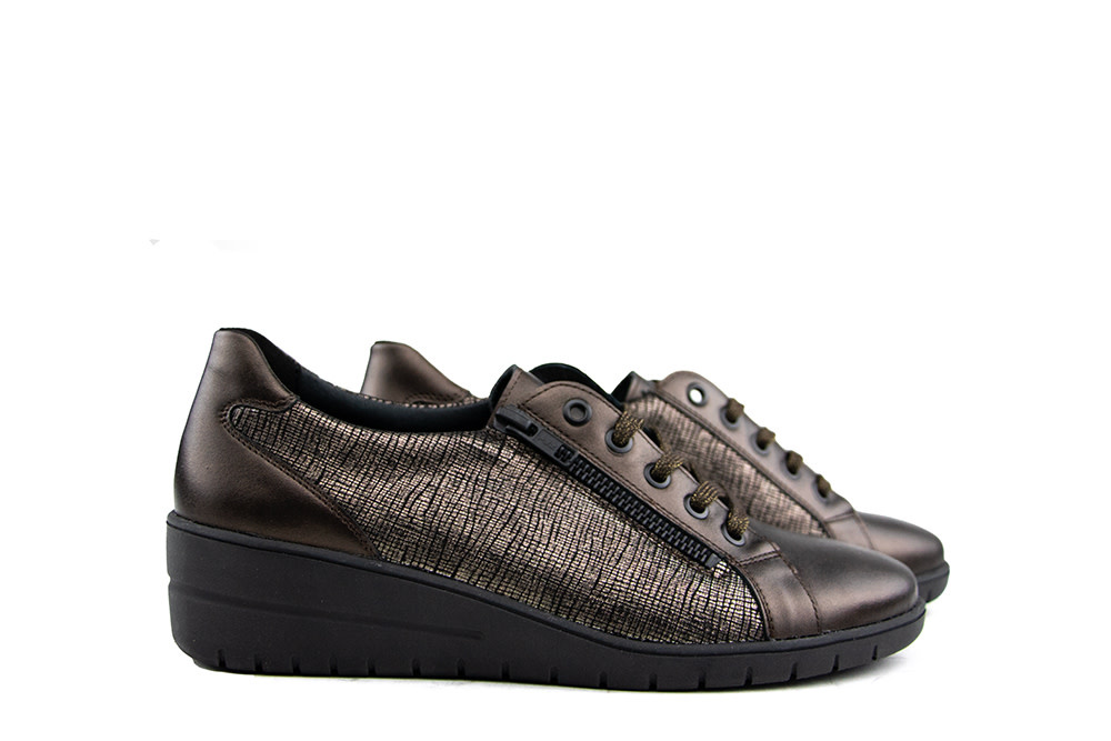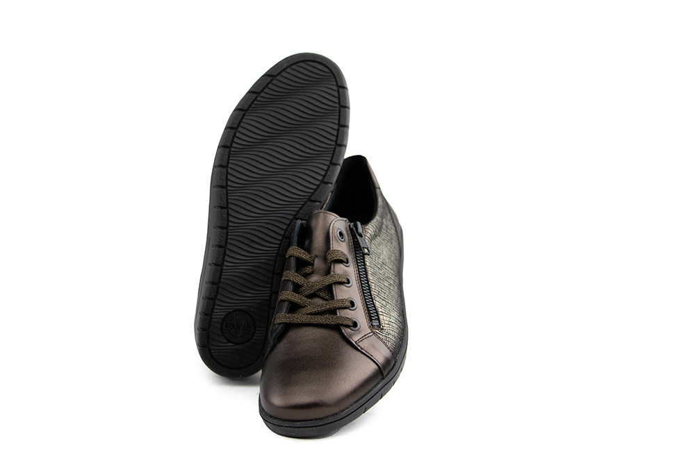 Stilvoll und komfortabel – diese bronzefarbenen Solidus Helia Hilston Platin Damen-Schnürschuhe aus Leder vereinen modernes Design mit praktischen Details. Die Metallic-Optik und dezenten Glitzerschnürsenkel setzen einen funkelnden Akzent, während der Print an der Seite dem Schuh ein zeitgemäßes Aussehen verleiht.