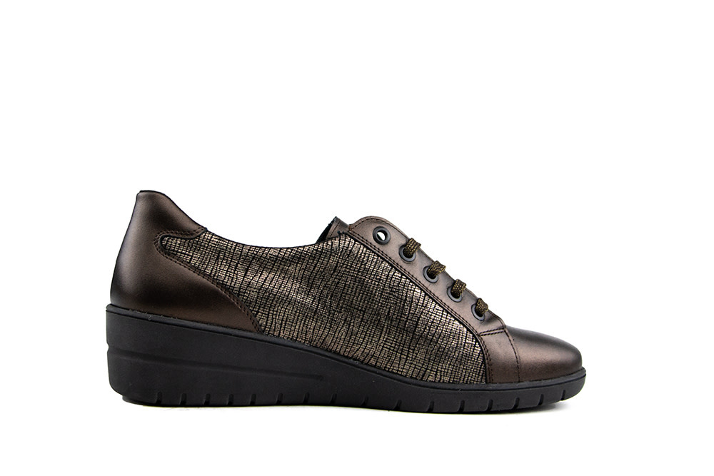 Dank der Reiß- und Schnürverschlusskombination lassen sich die Schuhe leicht an- und ausziehen und individuell anpassen. Das Textilfutter sorgt für ein weiches, atmungsaktives Tragegefühl. Das herausnehmbare Fußbett ermöglicht eigene Einlagen, und die H-Weite bietet zusätzlichen Platz im Vorfuß. Die dezente Keilsohle verleiht dem Schuh Eleganz, ohne den Komfort zu beeinträchtigen.