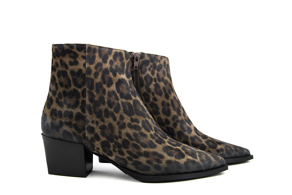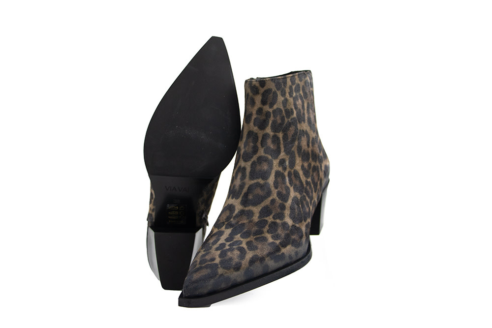 Diese Damen Stiefeletten von Via Vai sind ein modisches Highlight für den Herbst. Gefertigt aus hochwertigem Wildleder mit dezentem Leopardenmuster, vereinen sie Stilbewusstsein und feminine Eleganz. Die spitze Form und der Absatz von 5,5 cm verleihen eine elegante Silhouette, während die schwarze Sohle dem Look eine moderne Note gibt.