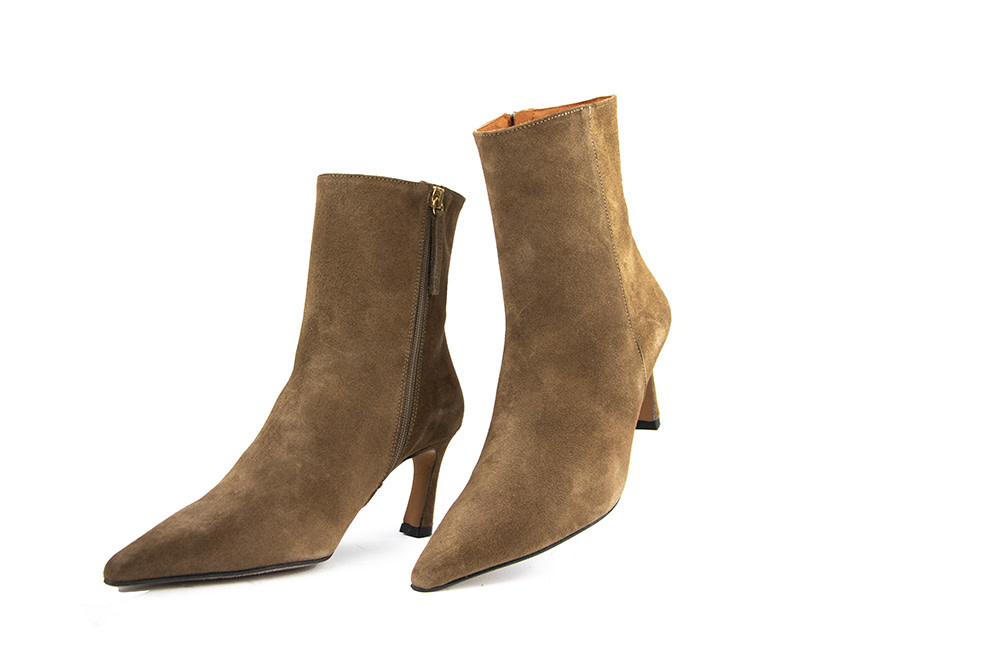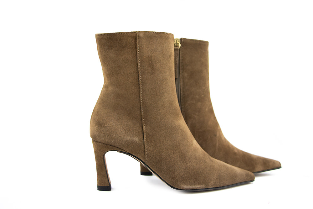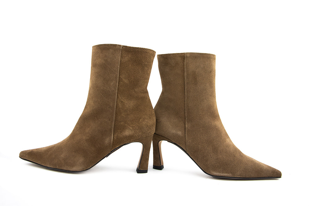 Deze stijlvolle zand/camel kleurige enkellaarsjes van Ángel Alarcón zijn een elegante toevoeging aan je garderobe. De nauwsluitende pasvorm en de smal uitlopende spitse neus geven ze een verfijnde, vrouwelijke uitstraling. De subtiele belijning aan de zijkant en de smalle hak van 7 cm zorgen voor een chique, moderne look die perfect aansluit bij zowel zakelijke als feestelijke outfits.