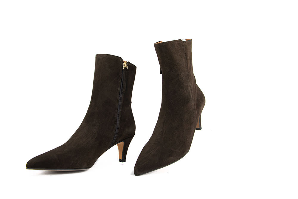 Elegante chocoladebruine suède enkellaarsjes van Ángel Alarcón