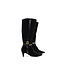 Deze stijlvolle zwarte suède laarzen van Ángel Alarcón zijn perfect voor vrouwen die houden van een elegante en moderne look. De brede leren belijning over de zijkant en enkel, gecombineerd met een subtiele goudkleurige gesp, geeft de laarsjes een chique en verfijnd accent. Het slanke model met spitse neus en smal toelopende hak van 7 cm maakt de laarzen bijzonder vrouwelijk en eigentijds.