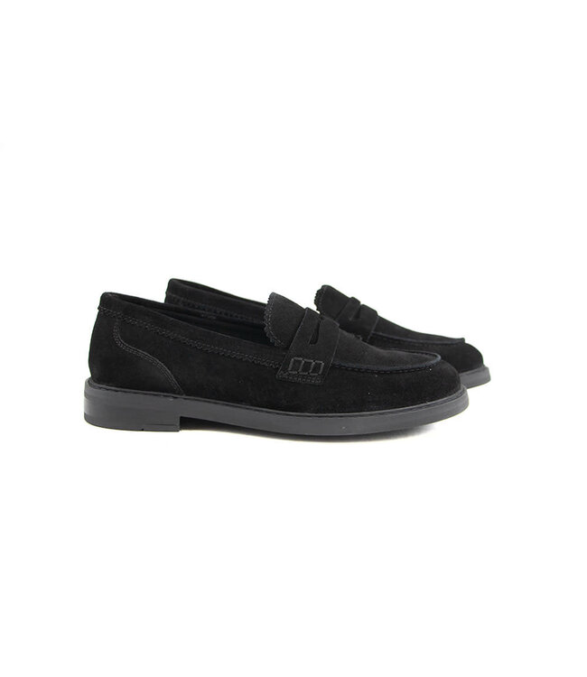 Mooie basis loafer van Ara, gemaakt van zwart suède. De loafers hebben een klassieke, doorgestikte neus, een leren stuk over de wreef en een gekartelde tong. De voering is gemaakt van leer en de stevige loopzool van rubber. De schoenen hebben een zachte binnenzool.