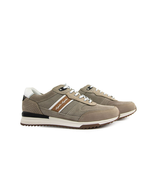 Casual en sportief, dat zijn de kernwoorden van deze Australian heren sneakers. Gemaakt van beige suède, met subtiele perforaties en een deel met een driehoekige structuurprint voor een speels en modern effect.