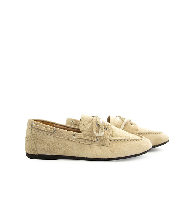 De Cycleur de Luxe Poppy Pumice loafers zijn de perfecte mix tussen een bootschoen en een mocassin. Het taupe/beige suède geeft het model een zachte, natuurlijke uitstraling die moeiteloos combineert met zowel casual als meer geklede outfits. De spiegelnaad benadrukt het klassieke mocassin-karakter, terwijl de vetersluiting en het touw rondom zorgen voor die typische bootschoen-look. Het subtiele stiksel op de achterkant maakt het ontwerp stijlvol af.
