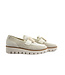 De witte leren spiegelnaad en de band over de wreef met taupe siergesp geven de loafer een stijlvolle en eigentijdse twist. Dankzij de elastische inzetten aan beide kanten stap je er gemakkelijk in en sluiten ze comfortabel aan om de voet. De stevige rubberen profielzool zorgt voor grip en stabiliteit, ideaal voor dagelijks gebruik.