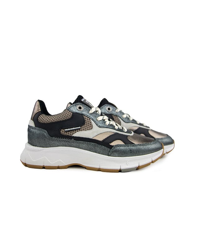 Op zoek naar sneakers die nét even anders zijn? Deze metallic zilveren Daysi 03.08 sneakers van Floris van Bommel hebben een speelse en opvallende uitstraling dankzij de bonte mix van kleuren en metallic finishes. De textiele basis op de zijkant en tong geeft de schoen een luchtige look, terwijl de tweekleurige veters en de herkenbare logo-accenten zorgen voor dat typische Floris van Bommel karakter. De stevige witte rubberen zool maakt het geheel sportief en modern.