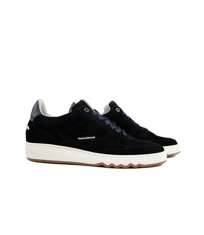 Het bovenwerk is uitgevoerd in donkerblauw suède en wordt fris geaccentueerd met witte details. De heldere witte rubberen loopzool geeft de sneaker een moderne en verzorgde uitstraling, zonder te sportief te ogen. Juist deze rustige zool zorgt ervoor dat de schoen gemakkelijk te combineren is met een nette jeans, chino of zelfs onder een colbert. Het design straalt kwaliteit en zelfvertrouwen uit, precies wat je verwacht van Floris van Bommel.