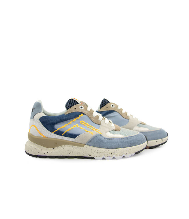 De textiele tong, neon oranje accenten en subtiele logo details geven de sneaker een frisse, eigentijdse twist. De unieke zool maakt het ontwerp helemaal af en zorgt voor een herkenbare Floris-signatuur. Dankzij de G1/2 wijdte sluit de schoen mooi aan op de gemiddelde voet.