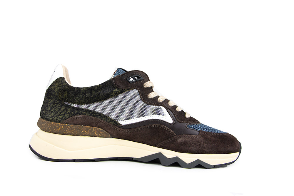 Met de Floris van Bommel De Zager 05.26 sneakers geef je je najaarsoutfit in één klap een stijlvolle upgrade. Deze lage herensneakers combineren donkerbruin suède met leer en textiele accenten voor een rijke, gelaagde look. De taupekleurige hiel, blauwgrijze textiele wreef en neus, én de beige veters zorgen voor een fraaie balans tussen stoer en verfijnd.