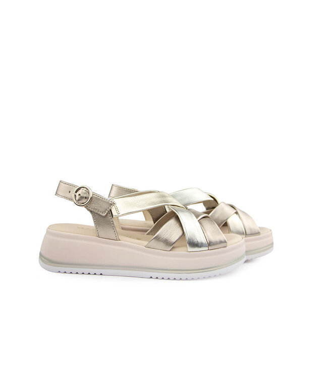Deze Gabor sandalen combineren glamour en comfort in één stijlvol model. Het bovenwerk is gemaakt van goud platina leer met zachte, comfortabele banden die de voet omhullen. Het subtiele gespje rond de enkel maakt de pasvorm eenvoudig verstelbaar en geeft een elegante touch aan de sandalen.
