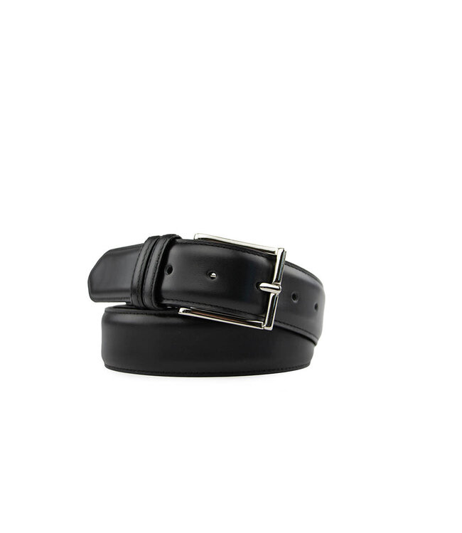 Deze zwarte leren herenriem van Greve uit de Signet-lijn is een stijlvolle en tijdloze accessoire. De glanzende gesp zorgt voor een elegante, klassieke afwerking, terwijl het verfijnde stikwerk het hoogwaardige karakter benadrukt.
