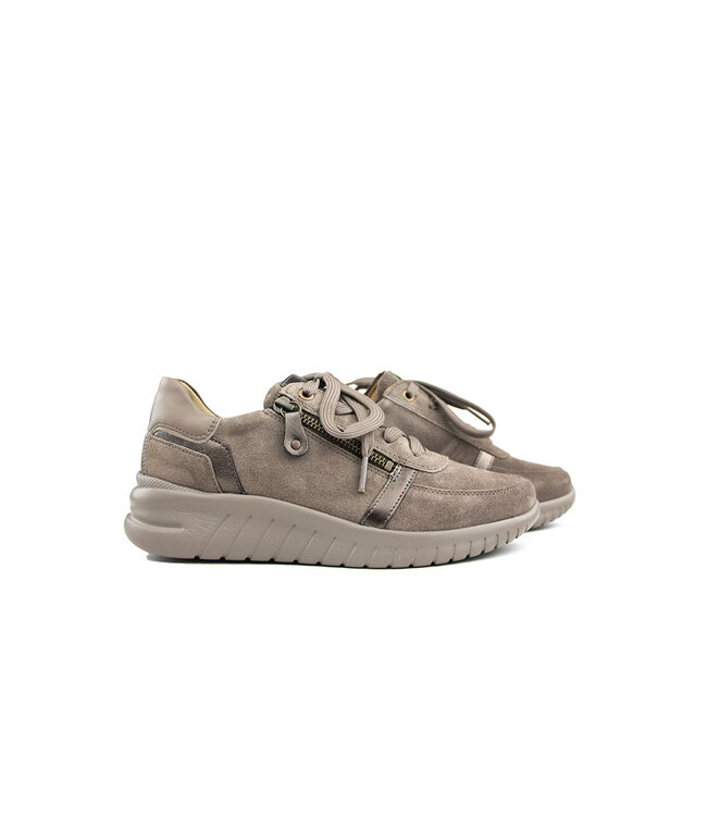 Deze Hartjes damesschoenen combineren comfort met een tijdloze uitstraling. Het taupe suède wordt stijlvol afgewisseld met bronzen leren accenten voor een subtiel luxe effect.