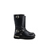 Stoere, hoge bikerboots voor meiden. Deze laarzen zijn gemaakt van glad, zwart leer en zijn kuithoogte. Voorzien van gespen met stoere, zilverkleurige studs en accenten. Aan de binnenkant loopt een ritssluiting van bovenaf, tot helemaal onderaan. De rits is vast te zetten met een stukje leer met klittenband. De laarzen hebben een uitneembare binnenzool, dus ze zijn ook geschikt voor steunzolen.