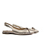 Het bovenwerk is gemaakt van platina leer met een spitse neus, wat de slingback een verfijnde en moderne uitstraling geeft. Het strikje op de wreef voegt een subtiel modieus accent toe en maakt de schoen speels en vrouwelijk, zonder dat het te opvallend wordt.