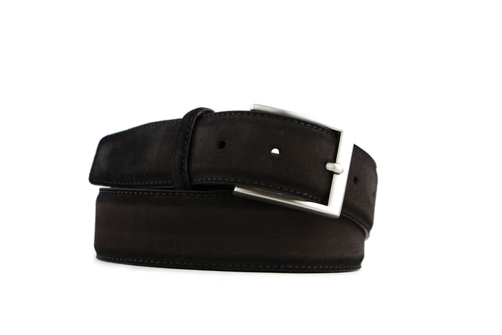 Deze donkerbruine suède Magnanni herenriem is de perfecte aanvulling op jouw stijlvolle outfit. Gemaakt van hoogwaardig suède leer met een verfijnde, matte uitstraling en afgewerkt met een gladde leren voering voor extra draagcomfort. De riem is verkrijgbaar in verschillende lengtes en eenvoudig op maat te maken, zodat hij altijd perfect past.