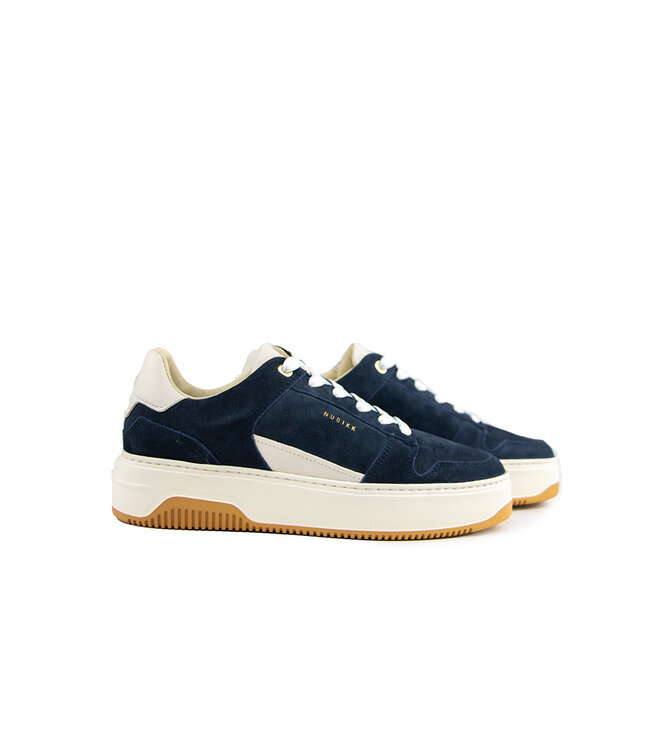 Deze stijlvolle basket sneaker van Nubikk voor dames combineert een retro design met modern comfort. Gemaakt van hoogwaardig blauw suède, afgewerkt met crème leren accenten, straalt deze sneaker luxe en elegantie uit. De bijpassende offwhite kleurige zool en frisse witte veters zorgen voor een harmonieus en trendy geheel.
