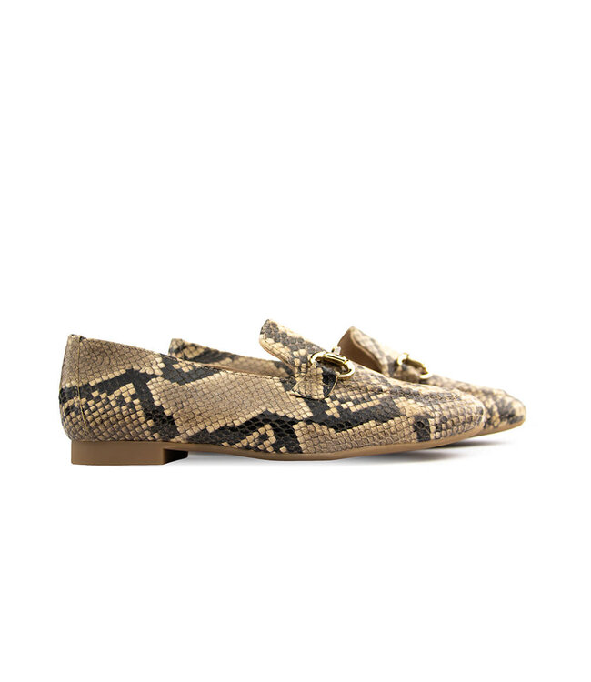 Deze dames loafers van Paul Green zijn een prachtig voorbeeld van tijdloze elegantie met een modieuze twist. Het klassieke model wordt versterkt door het goudkleurige bitje op de wreef, wat zorgt voor een luxe en verfijnde uitstraling. Het leer met bruin/beige snake print geeft de schoen nét dat beetje extra karakter, zonder zijn stijlvolle, rustige uitstraling te verliezen.