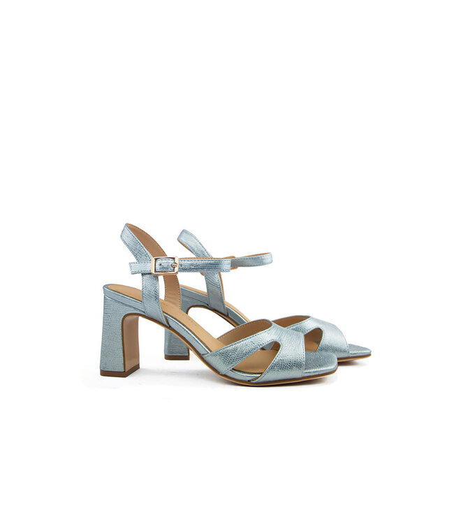 Deze prachtige sandaal van Regarde le Ciel is een echte blikvanger. Uitgevoerd in lichtblauw metallic leer met een subtiele snake print, straalt dit model luxe en vrouwelijkheid uit. De vierkante neus geeft de sandaal een moderne, eigentijdse uitstraling en zorgt voor een elegante balans tussen trendy en tijdloos.