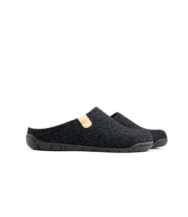 Makkelijke instappers van het merk Rohde. Gemaakt van antraciet vilt. Het voetbed is gemaakt van suède en is heel dik en zacht. Ook is het voetbed uitneembaar. Met rubberen loopzool, zodat je ook makkelijk even naar buiten kunt lopen.