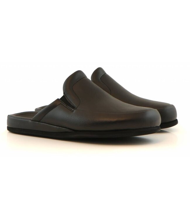 Deze eenvoudige muiltjes zijn fijn om zo bij huis aan te hebben! De muilen zijn uitgevoerd in zwart leer met aan de zijkant elastische inzetten. De voering is van leer en de loopzool is van poro rubber, dit is een lichtgewicht rubber. Een mooi detail is de doorgestikte neus!