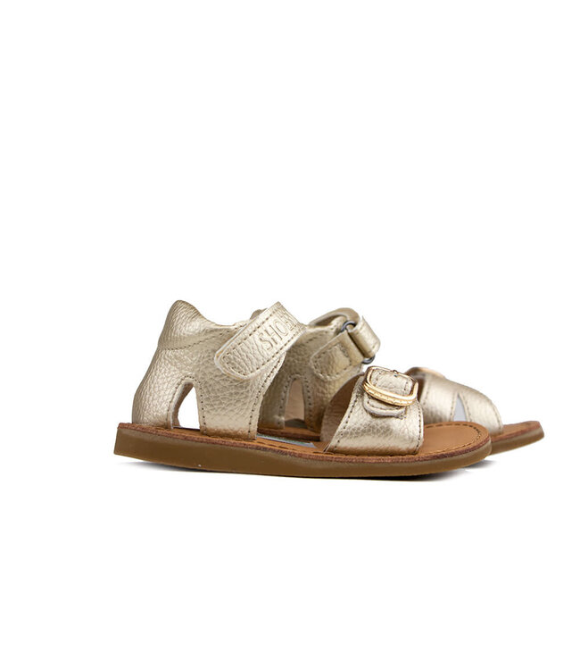 Deze goudkleurige Shoesme meisjessandalen zijn elegant, stijlvol en ideaal voor warme dagen. Het bovenwerk is gemaakt van goud leer met een mooie nerfstructuur, wat de sandalen een luxe uitstraling geeft.