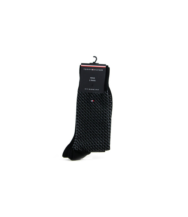 Stylish Tommy Hilfiger sokken voor de mannen. De set komt met twee paar zwarte sokken waarvan een paar is voorzien van een speels lichtgrijs motief. Het Tommy Hilfiger vlag logo komt bij beide terug op de enkel. Je voelt de sokken door het lichte materiaal haast niet aan je voeten en ze sluiten mooi aan.