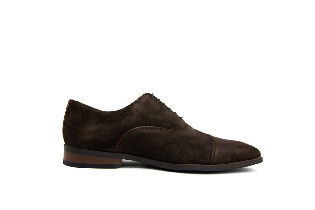 Gemaakt van donkerbruin suède, voorzien van een doorgestikte neus en verfijnde stikwerkbelijningen langs de zijkant, is deze schoen tot in de puntjes verzorgd. De cognac leren tong en hiel zorgen voor een warm kleurcontrast, terwijl de strakke afwerking rondom het vetervlak zorgt voor een gestroomlijnd geheel. De opvallende blauwe loopzool geeft de klassieke basis een eigentijdse touch – subtiel, maar doeltreffend.