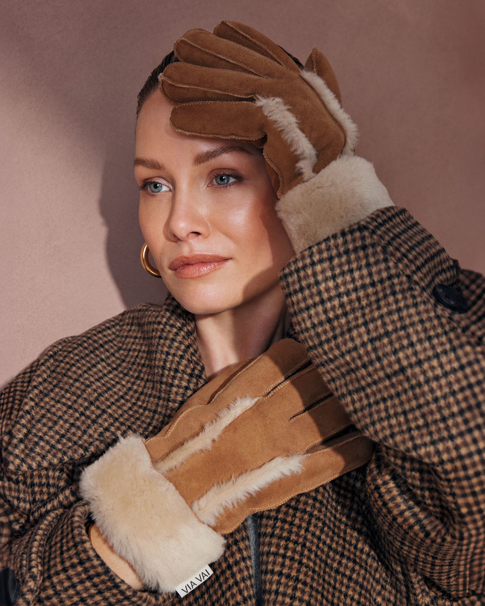 Deze cognac suède handschoenen van Via Vai Odile Zayn combineren een klassieke uitstraling met tijdloos design. De zachte schapenwollen voering zorgt voor heerlijk warme handen tijdens frisse dagen, terwijl het suède materiaal en de verfijnde afwerking de handschoenen een elegante touch geven. Perfect voor een stijlvolle en comfortabele toevoeging aan je herfst- en wintergarderobe.