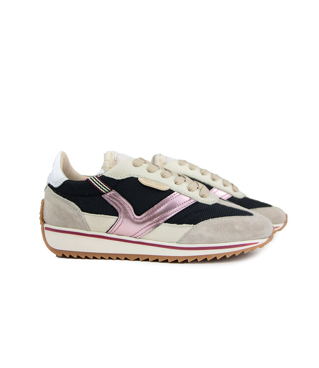 Deze trendy sneakers van Via Vai combineren moeiteloos stijl en comfort. Het camel suède wordt speels onderbroken door een metallic roze leren V op de zijkant en een wit leren hielvlak. De zwarte textiele ondergrond en de witte zool met rode rand geven een sportieve knipoog, terwijl de vachtrand op de tong zorgt voor een verrassend detail.