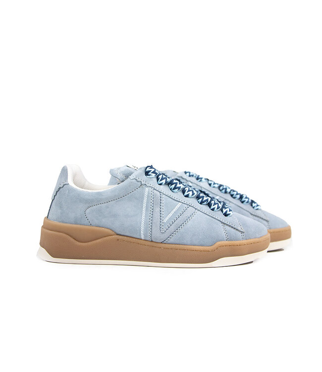 Deze sportieve retro sneakers van Via Vai stralen stijl en comfort uit. Uitgevoerd in lichtblauw suède, met brede, blauwe veters die zorgen voor een speelse touch. De bruine loopzool geeft het model een vintage uitstraling, perfect passend binnen de huidige sneakertrend. De textiel voering en het uitneembare voetbed maken deze sneakers niet alleen modieus, maar ook heerlijk comfortabel. De voering is ook nog eens heerlijk zacht gevoerd. Een must-have voor wie houdt van een mix tussen sportief en trendy!