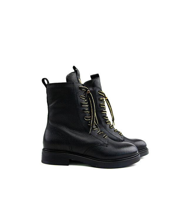 Deze zwart leren Juliette Abby veterboots zijn een must-have in de kledingkast van de Via Vai fan. Ze hebben een verfijnde print in het leer, gouddraad in de veters en een hoge tong. Je schiet de boots gemakkelijk aan met de rits en ze zitten fantastisch aan de voeten door de gewatteerde elementen, stevige lichtgewicht zool en de sublieme pasvorm. Het geheel is stoer, stijlvol en door de kleur gemakkelijk te combineren.