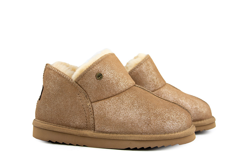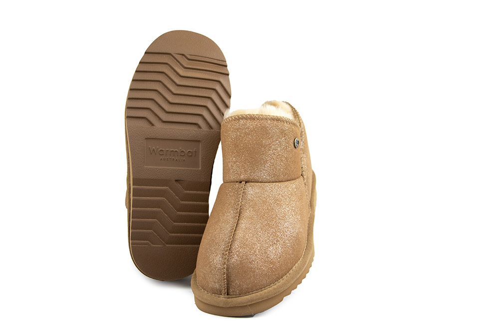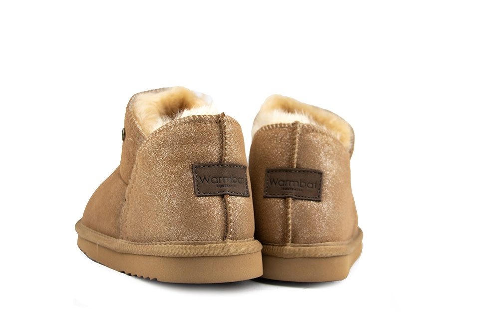 Deze shiny metallic gouden Warmbat Willow damespantoffels zijn een echte eyecatcher voor thuis. De hoge sluiting zorgt voor extra warmte rondom de enkels, terwijl de zachte schapenwollen voering je voeten heerlijk comfortabel houdt, zelfs op de koudste dagen. De herkenbare belijningen en subtiele logo-accenten geven de pantoffel een luxe uitstraling. Dankzij de lichtgewicht rubberen zool loop je er ook even mee naar buiten zonder probleem. Warm, stijlvol en comfortabel – precies wat je wilt in huis.